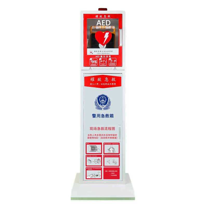 AED箱体:配置三角牌可自行选择拆装。大容量储物柜可容纳消防器材或急救包等。