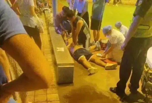 当晚19时38分,佛山市医疗急救指挥中心调度员接到求救电话,迅速了解现场情况,56秒后即派出就近的高明区人民医院救护车及急救团队赶往现场。与此同时,恰巧在附近运动的三名热心群众迅速对患者进行心肺复苏术操作,并让其他旁人帮忙取得AED。